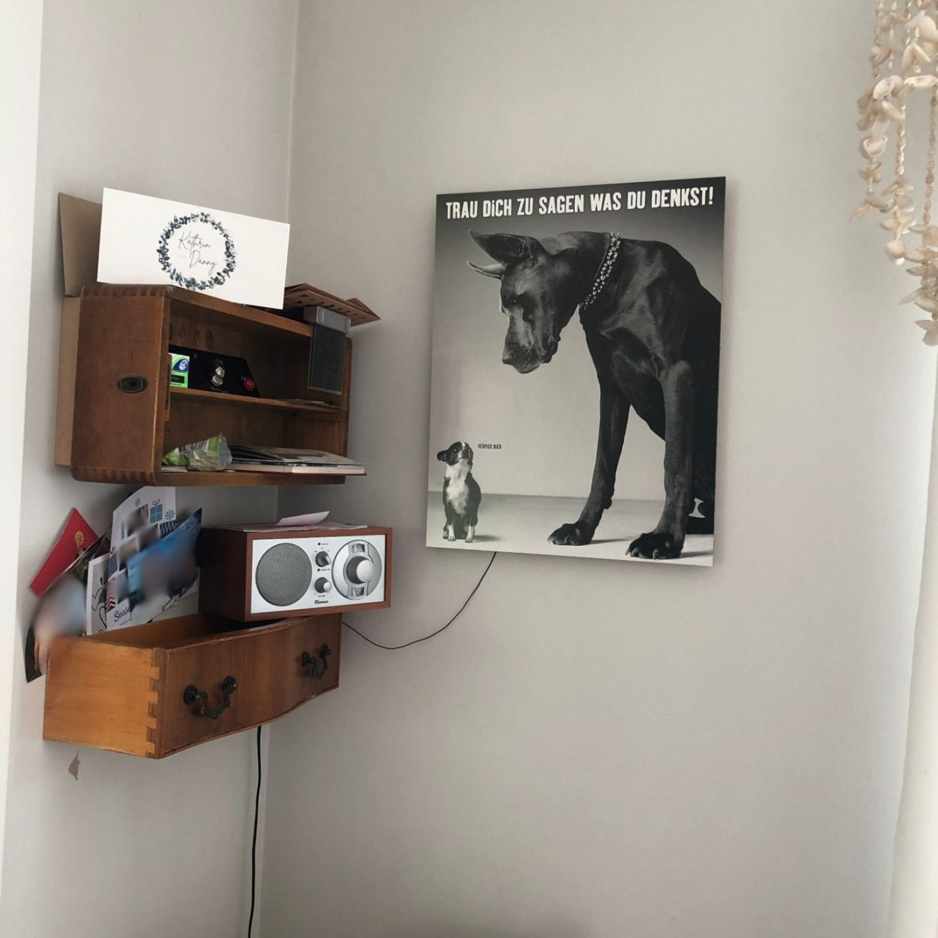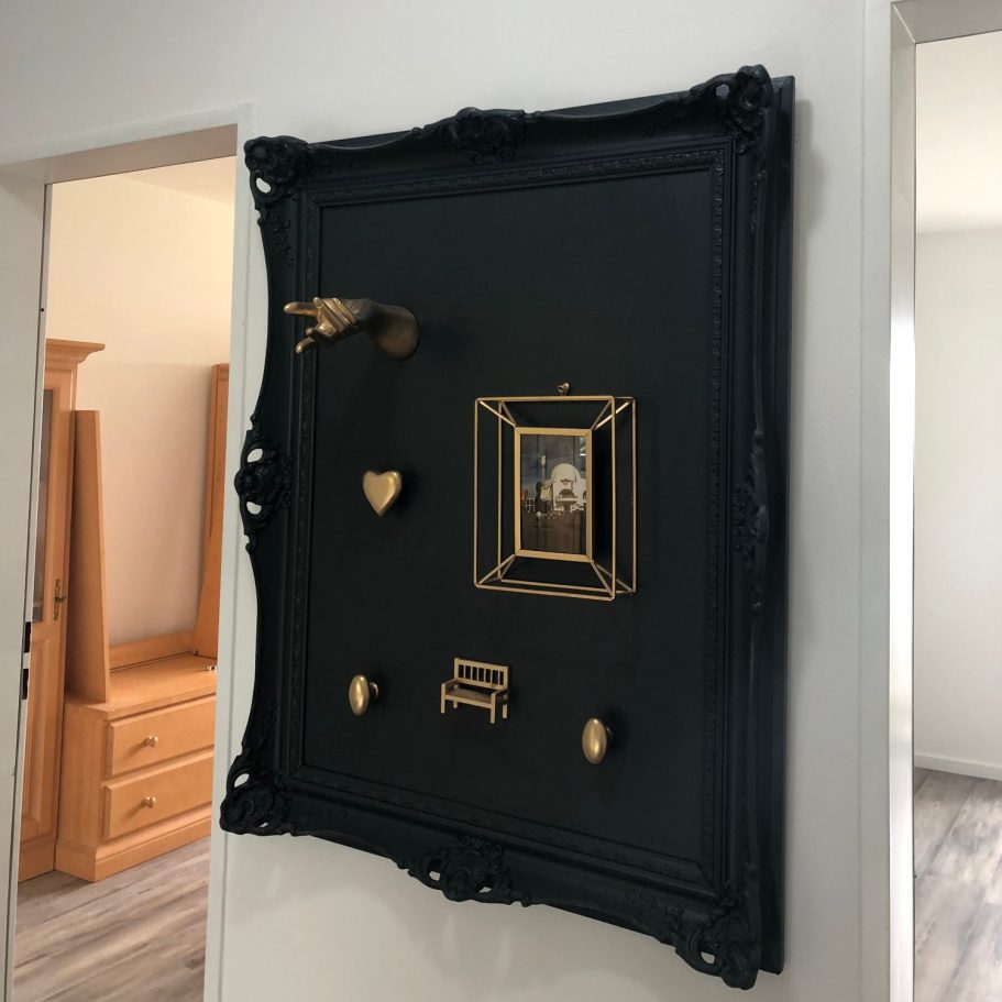 Wir sind alle mit dem Konzept von Bilderrahmen vertraut. Häufig erfüllen sie die traditionelle Funktion, jedoch sind die Möglichkeiten und Varianten der Rahmengestaltung nahezu unbegrenzt. Ein Eckrahmen ist ebenso geeignet wie eine einfache Leiste, ein Brett oder gar ein Glas. Auch indem man beispielsweise eine Schublade verkürzt, diese lackiert und an die Wand bringt, lässt sich schnell und effizient eine ansprechende und funktionale, mal andere Lösung realisieren.